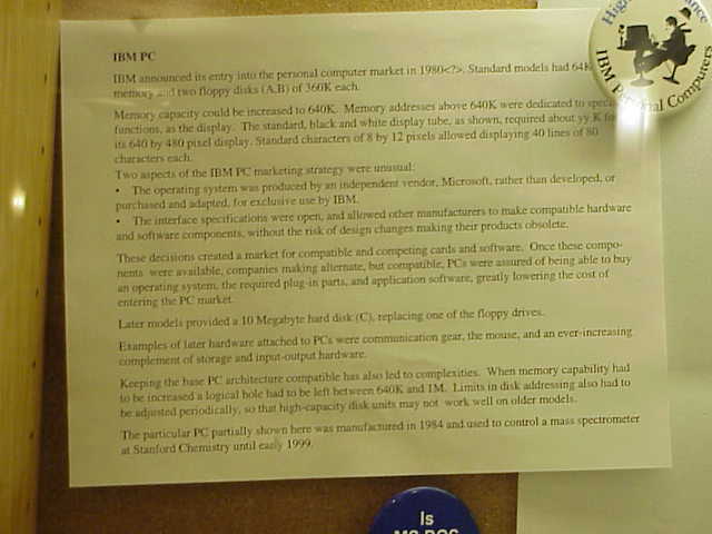 may not work well on older models. The particular PC partially shown here was manufactured in 1984 and used to control a mass spectrometer at Stanford Chemistry until early 1999. |